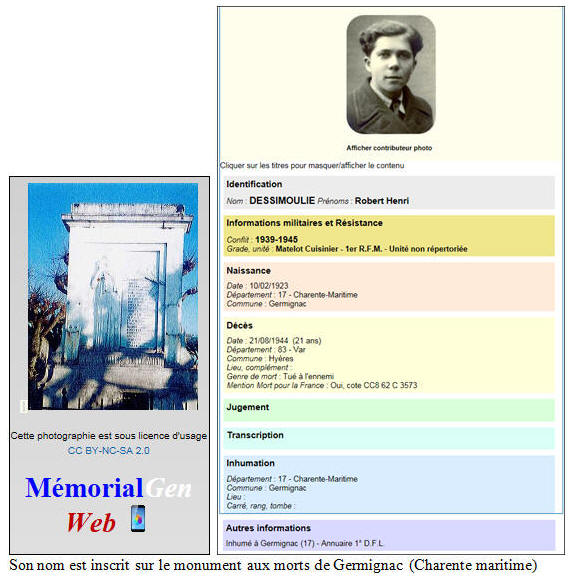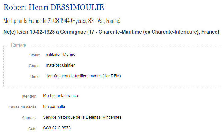 Né le 10 février 1923 à GERMIGNAC (Charente Maritime) - Décédé le 21