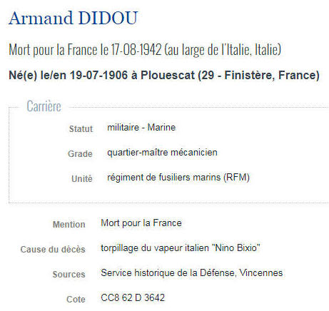 "Il y avait sur ce bateau 14 fusiliers marins. 10 furent noyés"