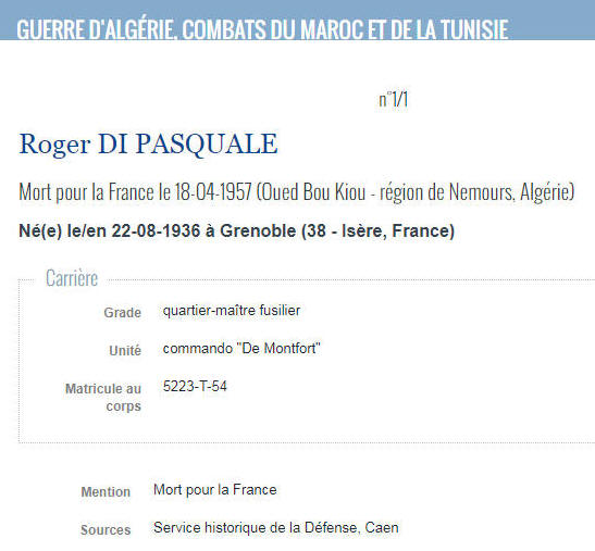 BRENOBLE (Isère) - Décédé le 18 avril 1957 à OUED BOU KIOU (Algérie)