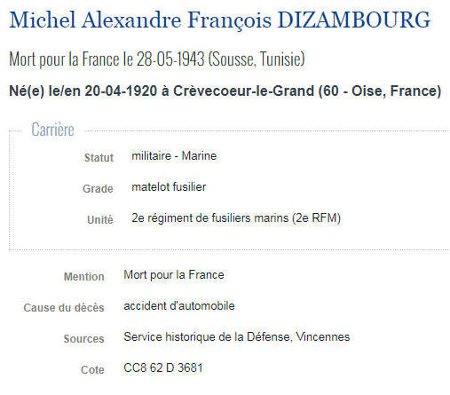 Mentionné sur le monument aux morts de Crèvecœur le Grand