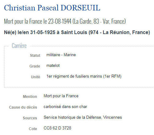 Né le 31 mai 1925 à SAINT LOUIS (La Réunion) - Décédé le 23 août