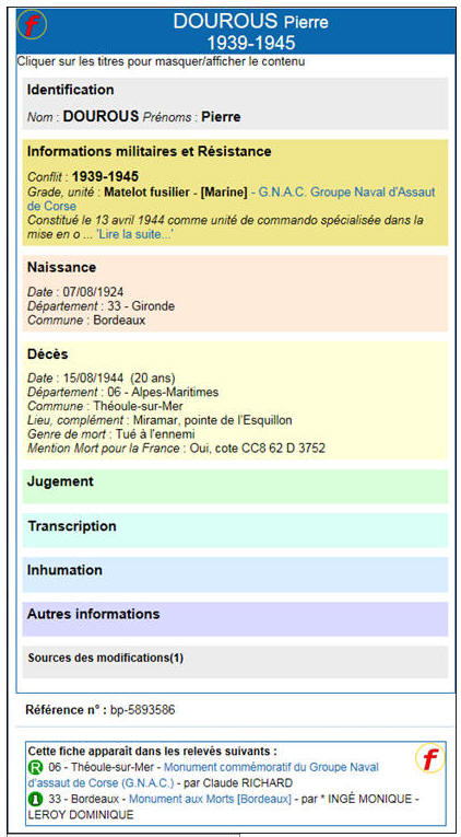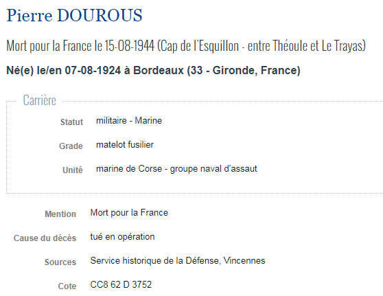 BORDEAUX (Gironde) - Décédé le 15 août 1944 au Cap de l'Esquillon,
