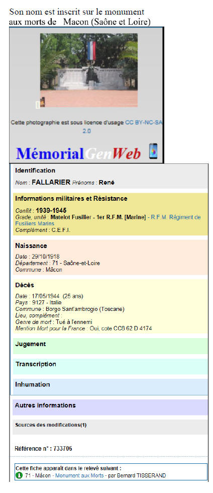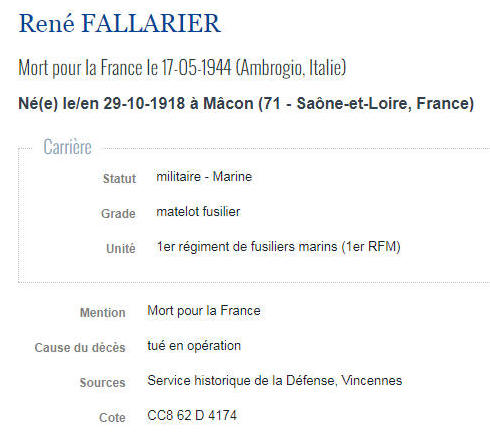 Né le 29 octobre 1918 à MACON (Saône et Loire) - Décédé le 17 mai