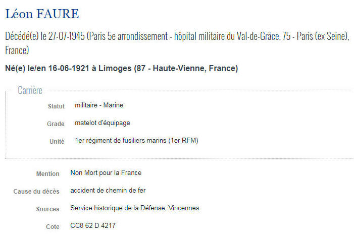 Né le 16 juin 1921 à LIMOGES (Haute Vienne) - Décédé le 27 juillet