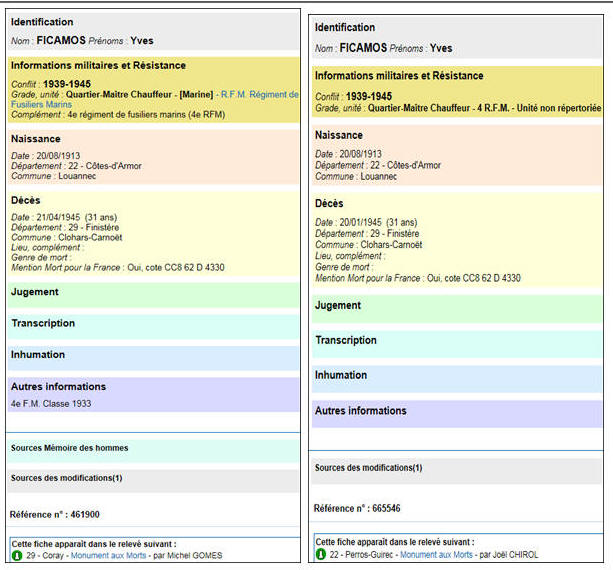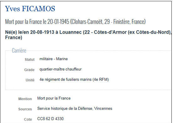 LOUANNEC (Cotes d’Armor) - Décédé le 20 janvier 1945 à