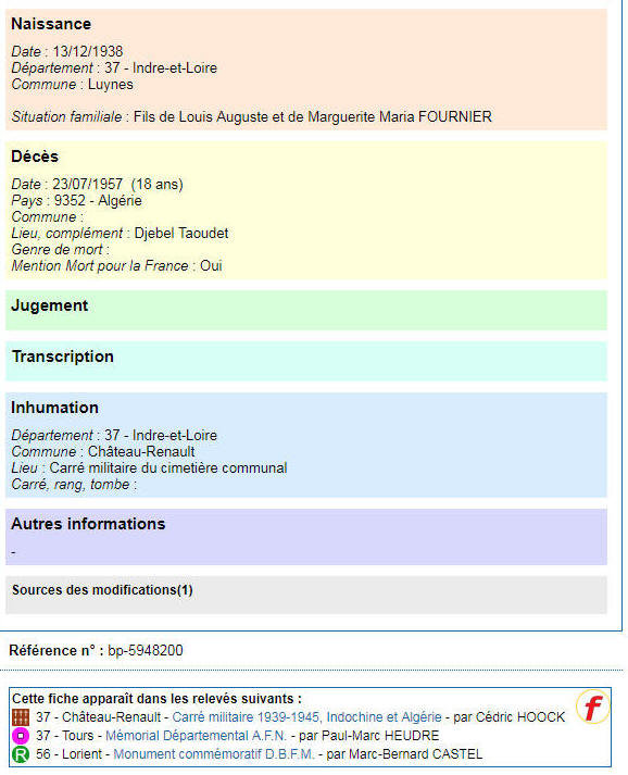 à LUYNES (Indre et Loire) - Décédé le 23 juillet 1957 à LAKHDARIA