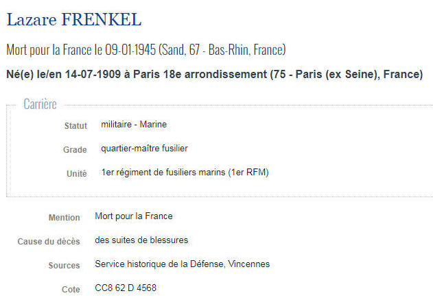17 avril 1919 suite au décès de son père / FRENKEL (Elie), matricule