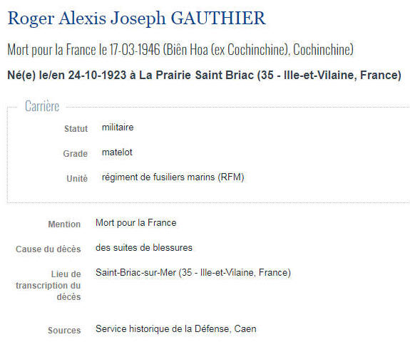 Décédé le 17 mars 1946 à BIEN HOA (Cochinchine)
