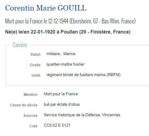 POULLAN sur MER (Finistère) - Décédé le 12 décembre 1944 à EBERSHEIM