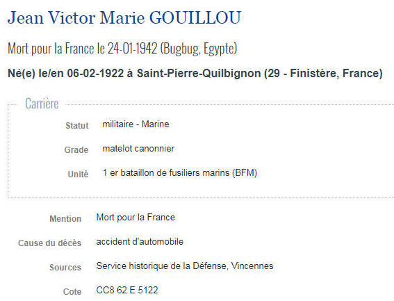 aujourd'hui) (Finistère) - Décédé le 24 janvier 1942 à BUGBUG