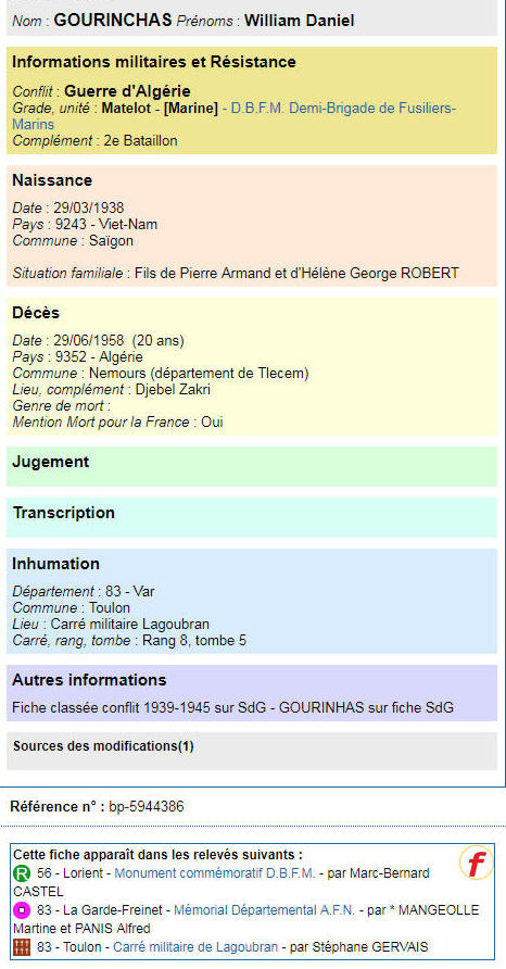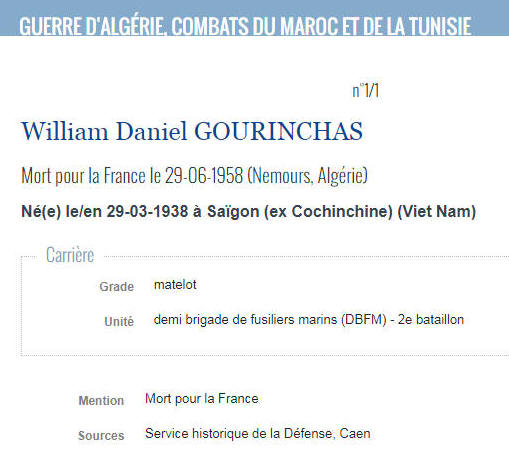 SAIGON (Vietnam) - Décédé le 29 juin 1958 à NEMOURS (Algérie)