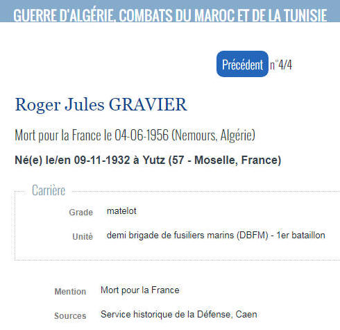Retour liste Morts pour la France / Algérie
