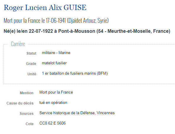 le 17 juin 1941 à DJAIDET ARTOUZ (Syrie)