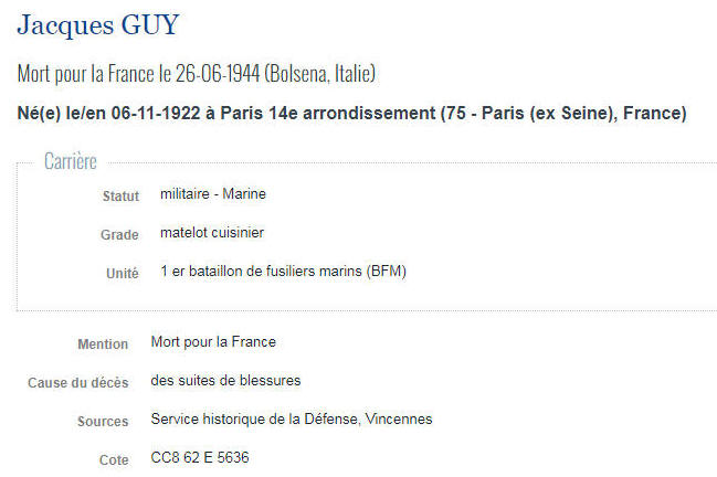 Né le 6 novembre 1922 à PARIS XIVe (Seine) - Décédé le 26 juin 1944