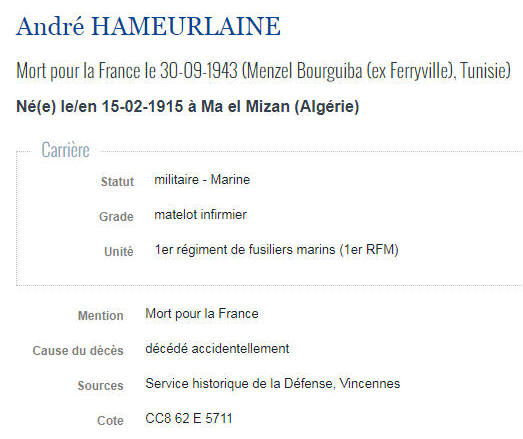 des morts du 1er RFM, décédé à l'hôpital maritime de SIDI ABDALLAH