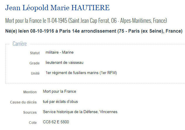 Né le 8 octobre 1916 à PARIS XIVe (Seine) - Décédé le 11 avril 1945