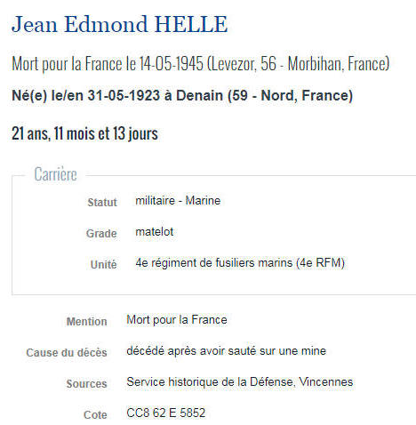 DENAIN (Nord) - Décédé le 14 mai 1945 à LEVEZOR