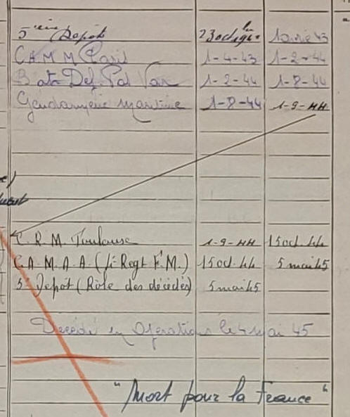 Extrait fiche matricule