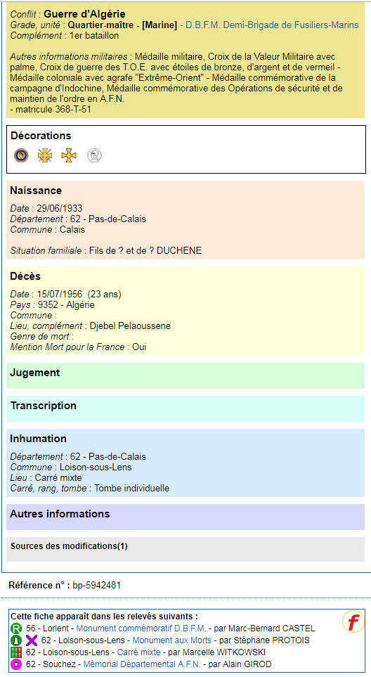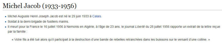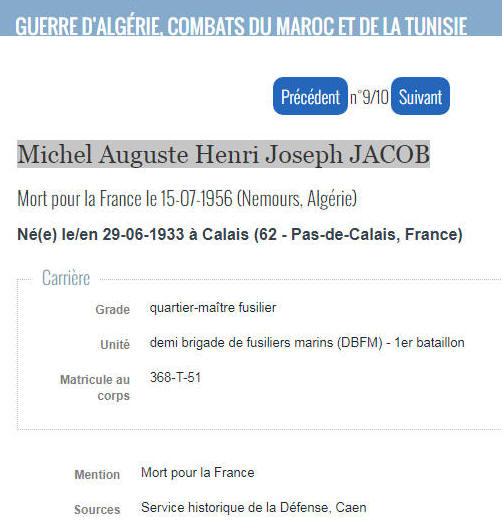 CALAIS (Pas de Calais) - Décédé le 15 juillet 1956 à NEMOURS (Algérie)
