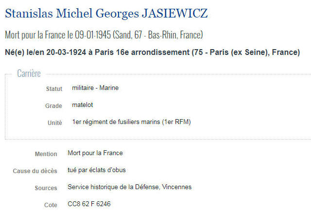 Né le 20 mars 1924 à PARIS XVIe (Seine) - Décédé le 9 janvier 1945 à