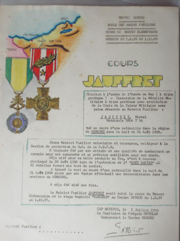 Fusiliers Marins porta son nom / 1er juin au 1er novembre 1959
