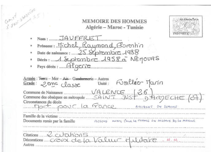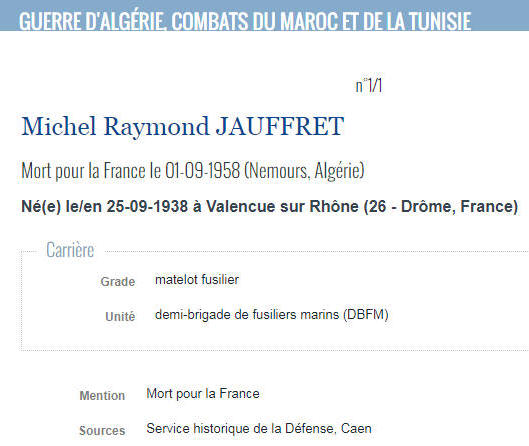 à VALENCUE sur RHÔNE (Drôme) - Décédé le 1er septembre 1958 à