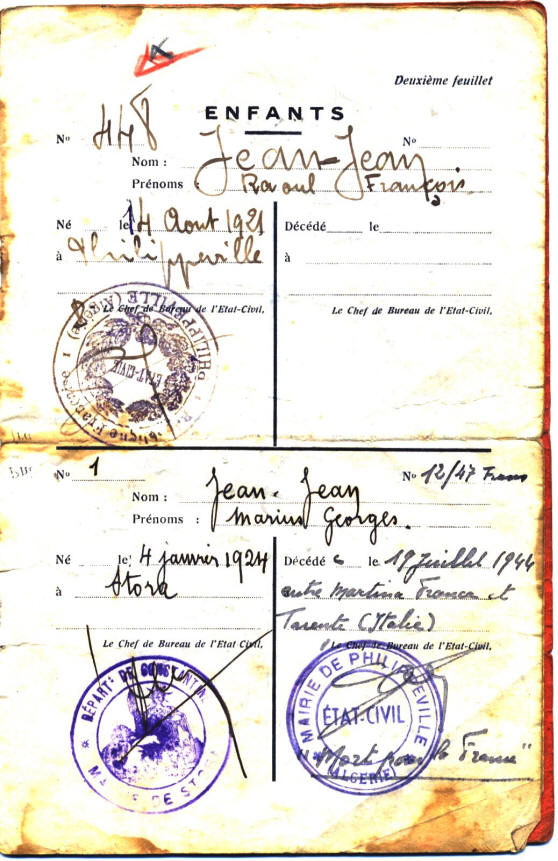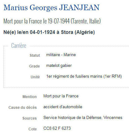 Né le 4 janvier 1924 à STORA (Algérie) - Décédé le 19 juillet 1944 à