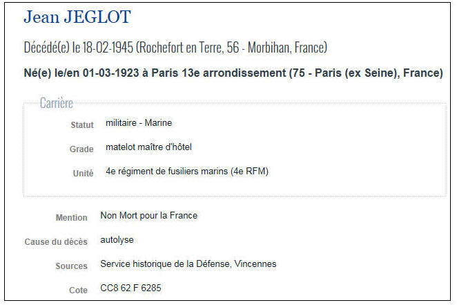 PARIS XIII (Seine) - Décédé le 18 février 1945 à ROCHEFORT en TERRE