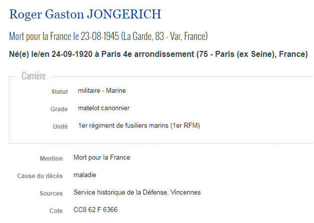 Né le 24 septembre 1920 à PARIS IVe (Seine) - Décédé le 23 août 1945