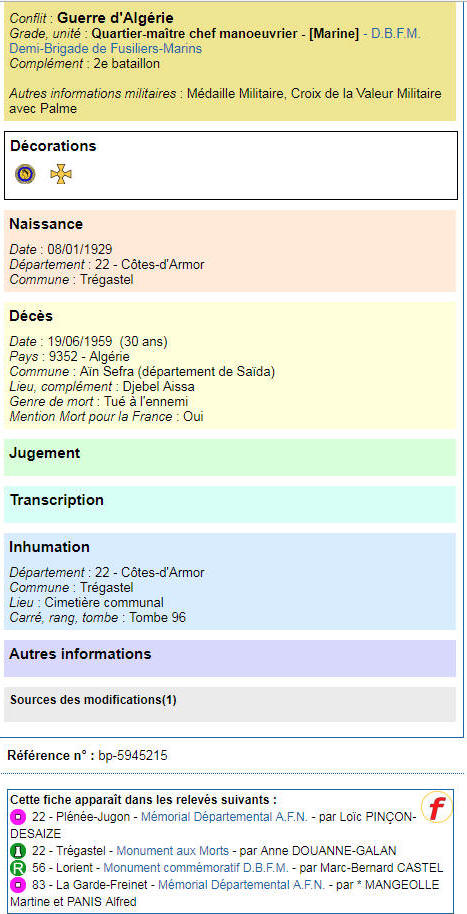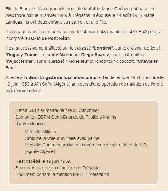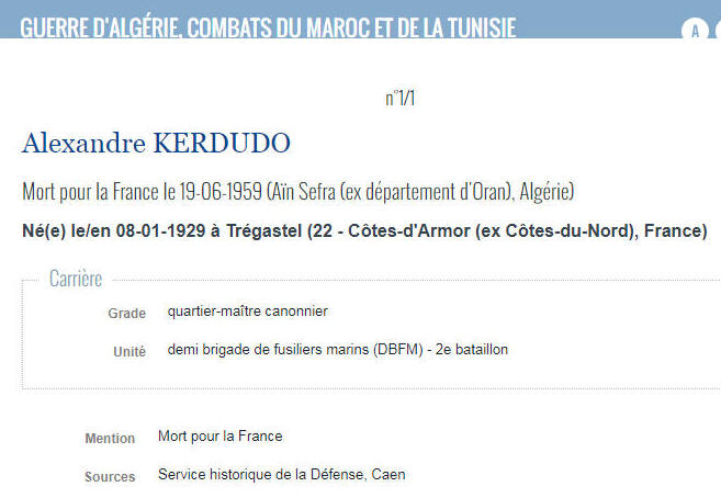 TREGASTEL (Côtes d'Armor) - Décédé le 19 juin 1959 à AÏN SEFRA