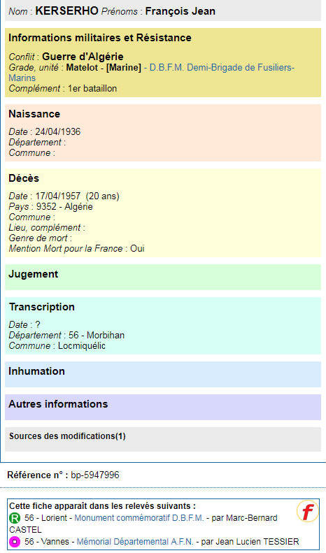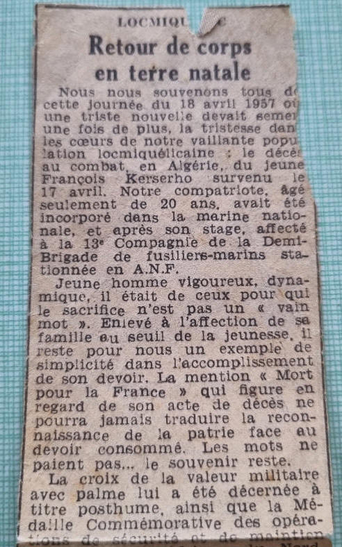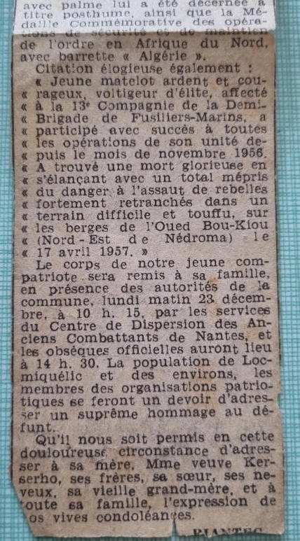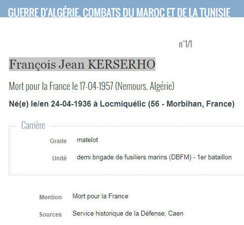 LOCMIQUELIC (Morbihan) - Décédé le 17 avril 1957 à NEMOURS