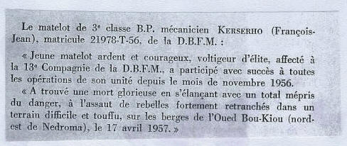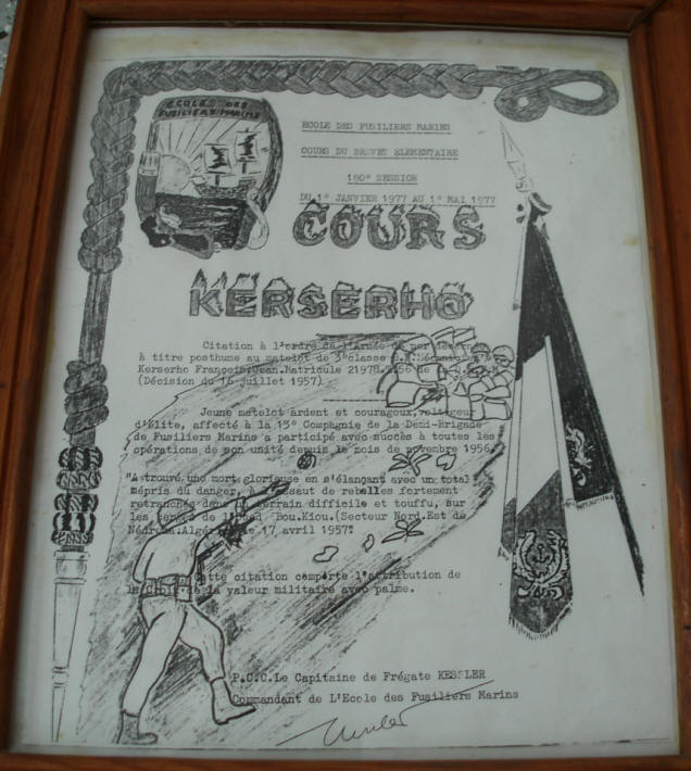 Un cours porte son nom à l'Ecole des fusiliers marins du 1er janvier