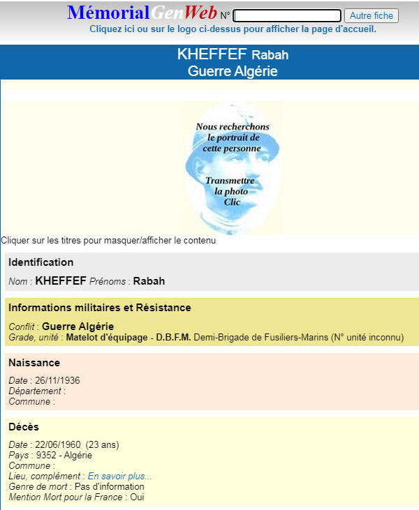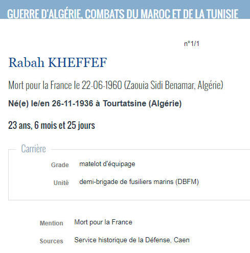 à TOURTATSINE (Algérie) - Décédé le 22 juin 1960 à ZAOUIA SIDI