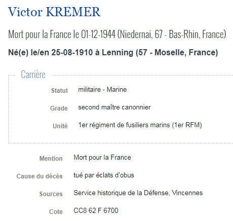 Né le 25 août 1910 à LENING (Moselle) - Décédé le 1er décembre 1944