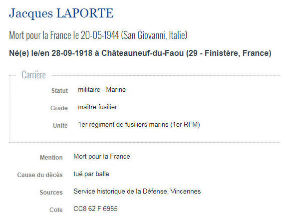 Mentionné sur le monument aux mort de Châteauneuf du Faou