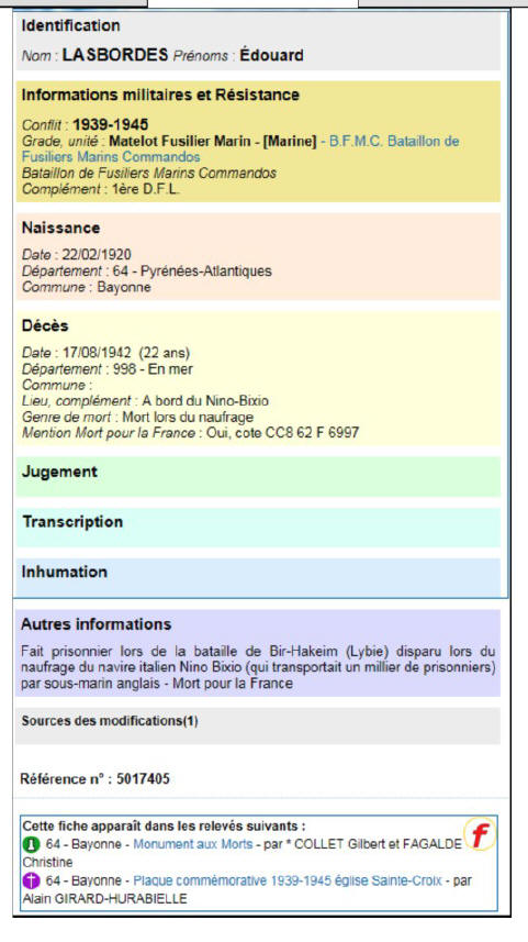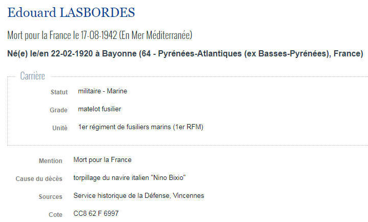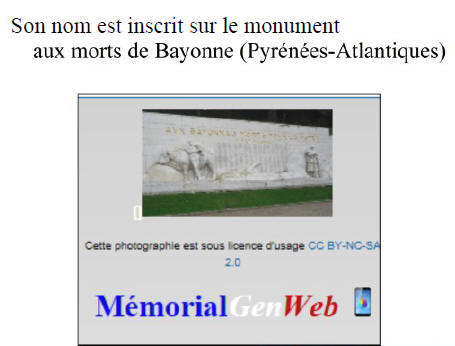 Né le 22 février 1920 à BAYONNE (Pyrénées-Atlantiques) - Décédé le