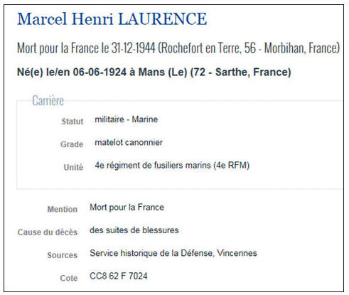 MANS (Sarthe) - Décédé le 31 décembre 1944 à Rochefort en terre