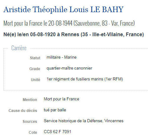 Né le 5 août 1920 à RENNES (Ille et Vilaine) - Décédé le 20 août