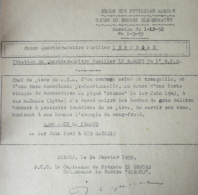 Un cours porte son nom à l'Ecole des fusiliers marins de Lorient, du