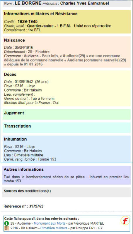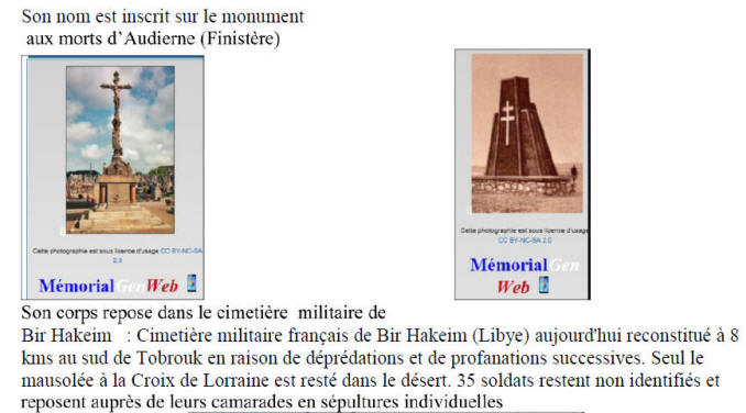 Né le 5 avril 1916 à AUDIERNE (Finistère) - Décédé le 1er juin 1942