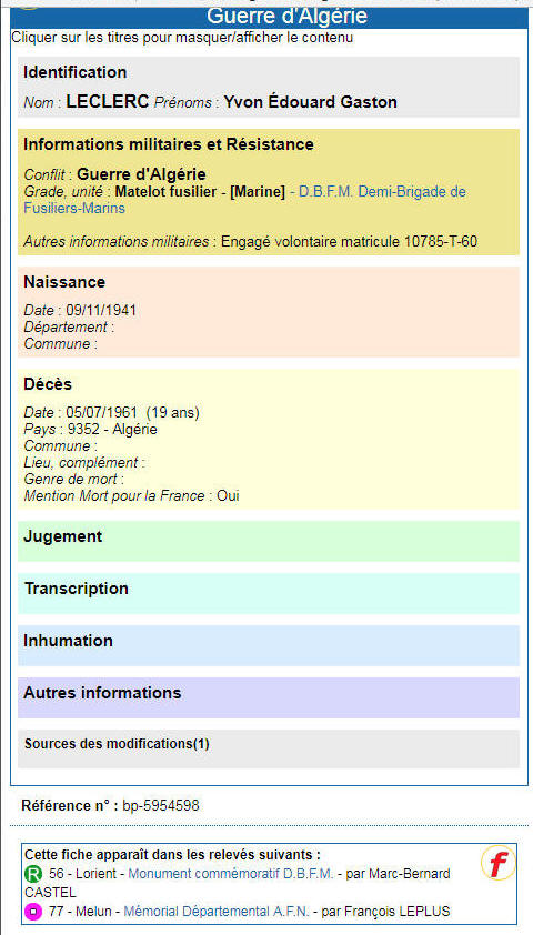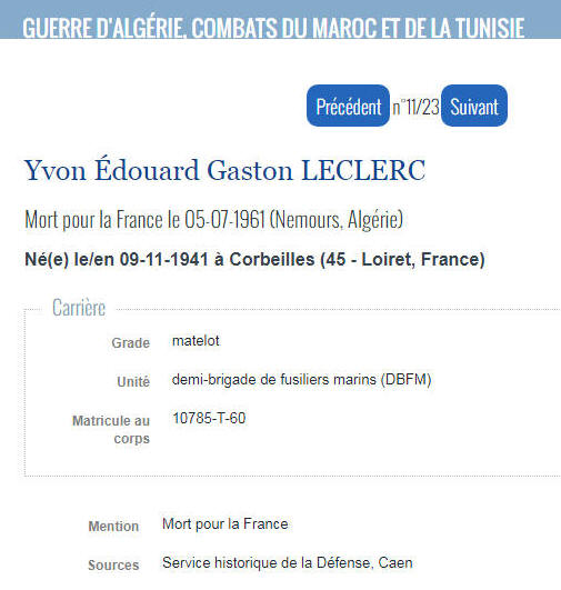 Né le 9 novembre 1941 à CORBEILLES (Loiret) - Décédé le 5 juillet 1961 à NEMOURS (Algérie)