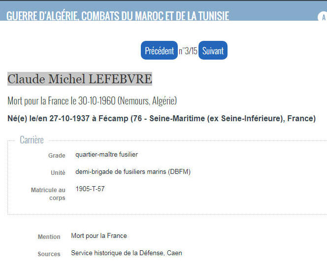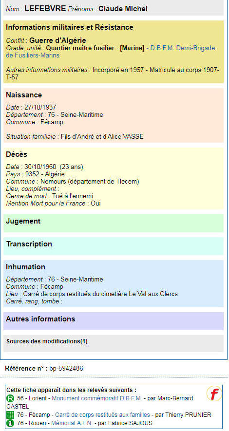 Inhumé à Fécamp au cimetière du Val aux Clercs
