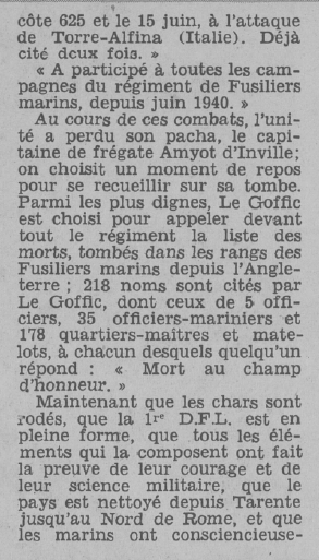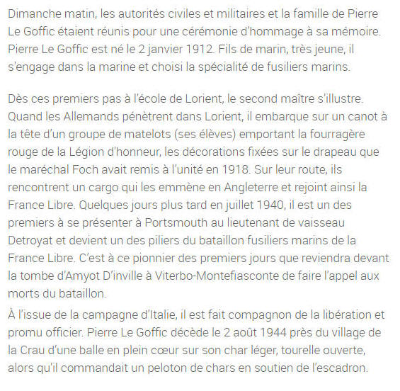 Son nom a été donné à la compagnie de fusiliers marins de Cherbourg