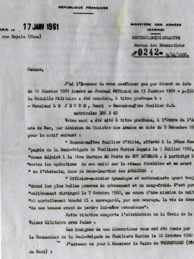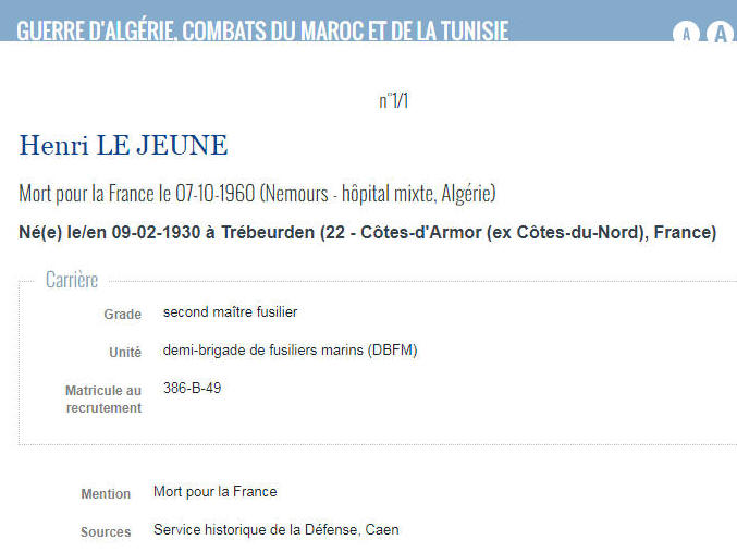 TREBEURDEN (Côtes d'Armor) - Décédé le 7 octobre 1960 à NEMOURS, à