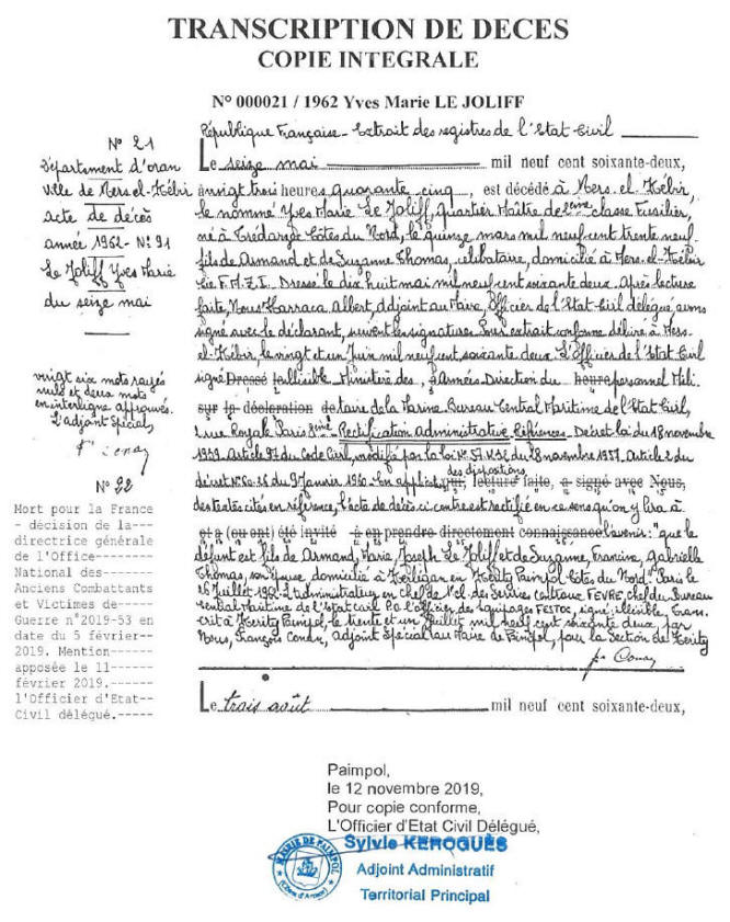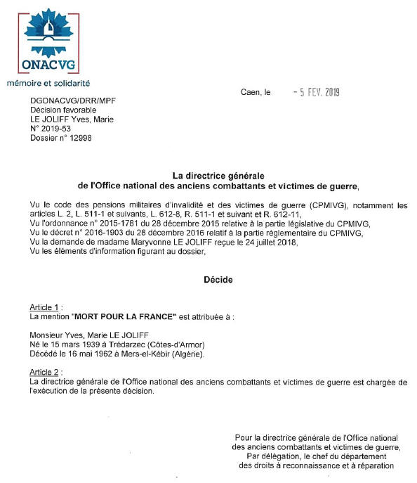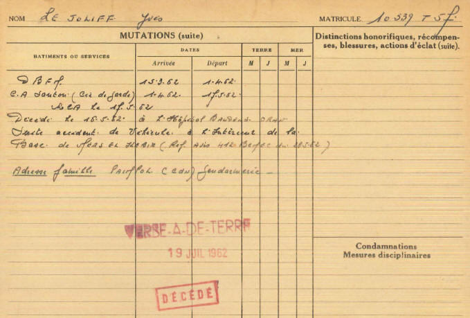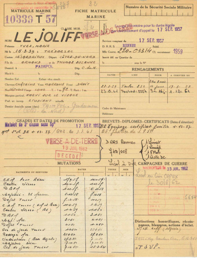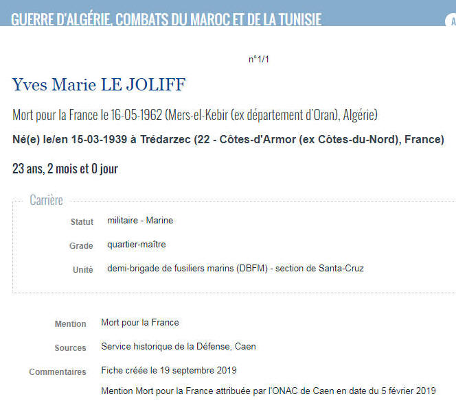 Né le 15 mars 1939 à TREDARZEC (Côtes d'Armor) - Décédé le 16 mai