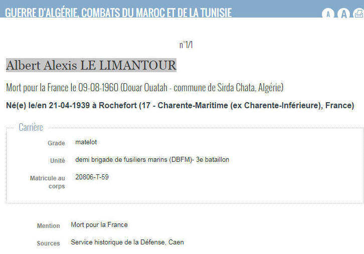 ROCHEFORT (Charente Maritime) - Décédé le 9 août 1960 à DOUAR OUATAH
