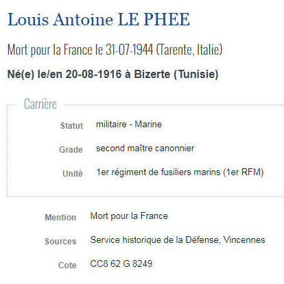 LE PHEE à Brest entre 1910 et 1916, ni en naissance, ni en décès