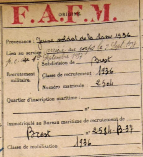 Alexandre, né le 5 juin 1910 à BREST (Finistère) / Père mentionné