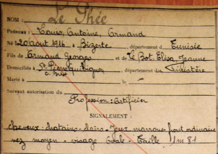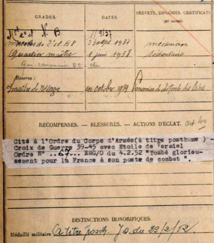 27 mars 1929 à VERTOU (Loire Atlantique). Chef armurier au 9e