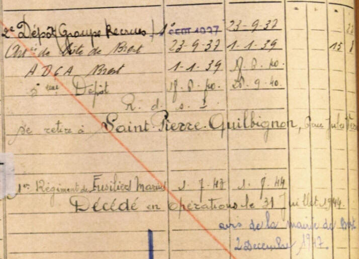 ouvrier à l'arsenal (Né le 27 septembre 1886 à Brest - Décédé) et
